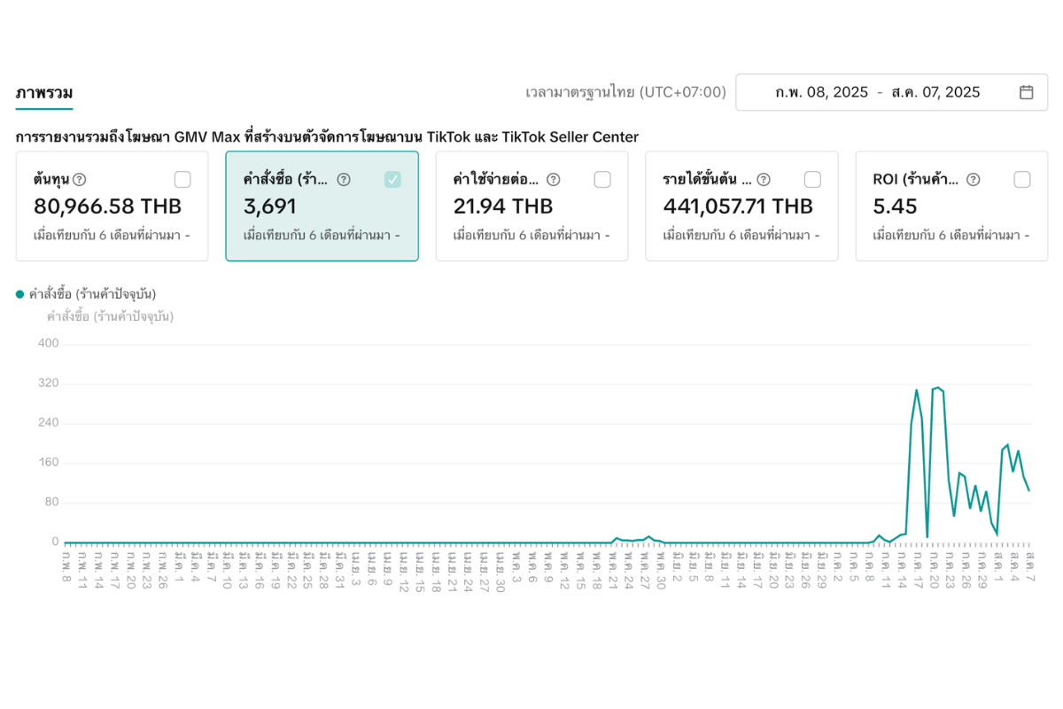 โฆษณาเพิ่มยอดขายด้วยโฆษณา GMV Max ได้ ROAS สูงสุด 5.45%